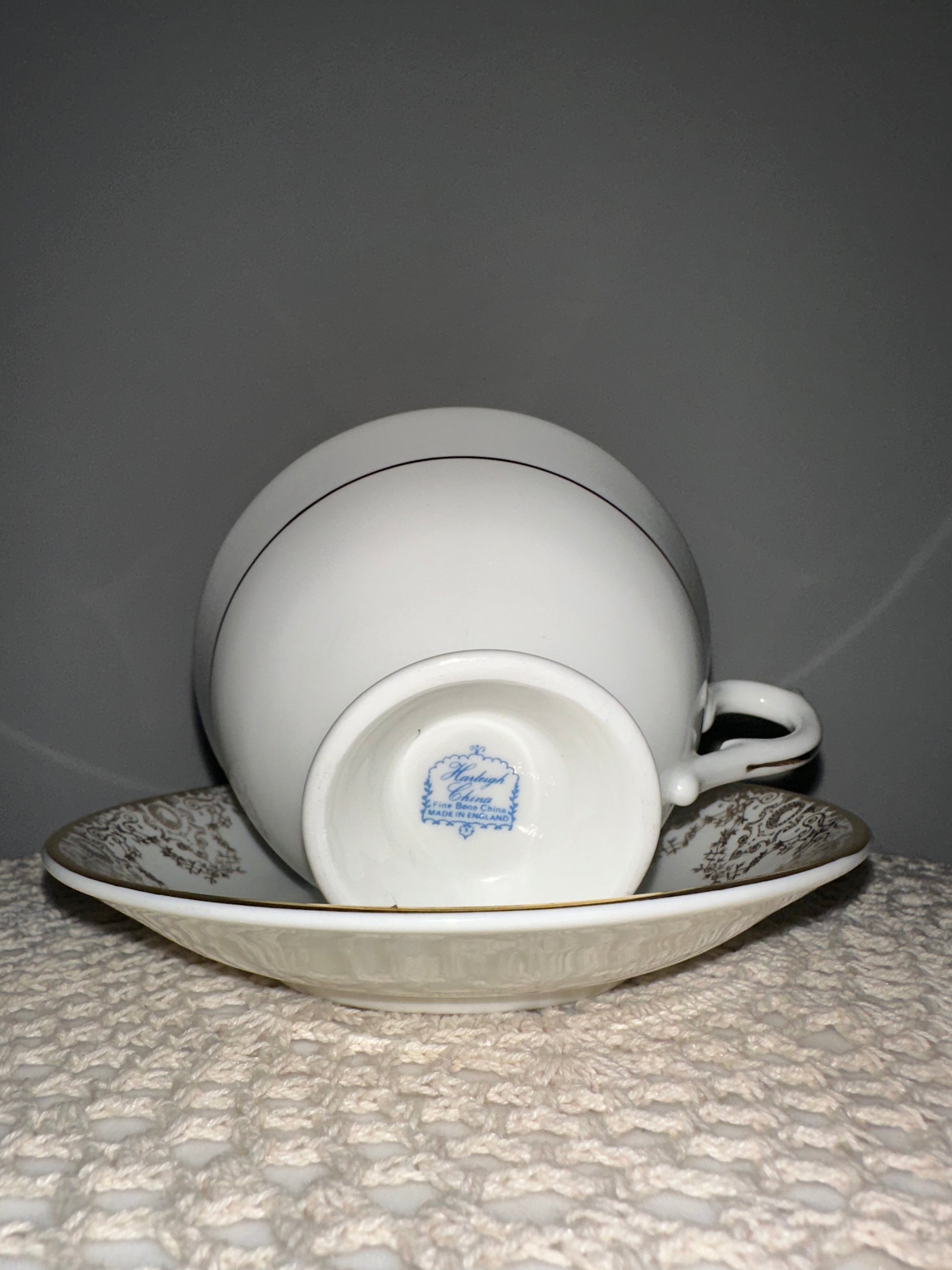 Harleigh China Fine Bone China Teacup and Saucer Set with Gold Trim