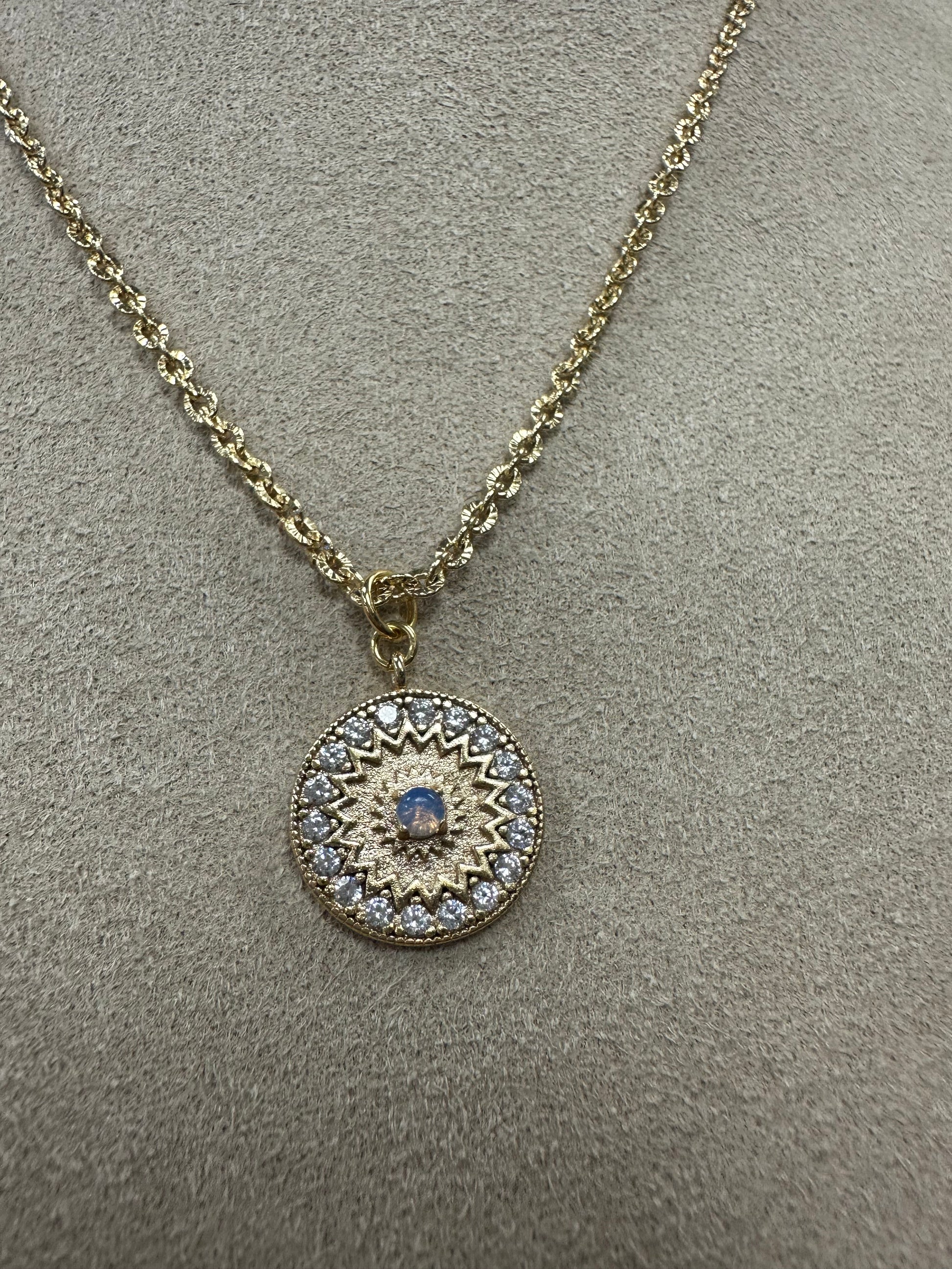 18K Gold Filled Micro Pave Moonstone Medallion Pendant