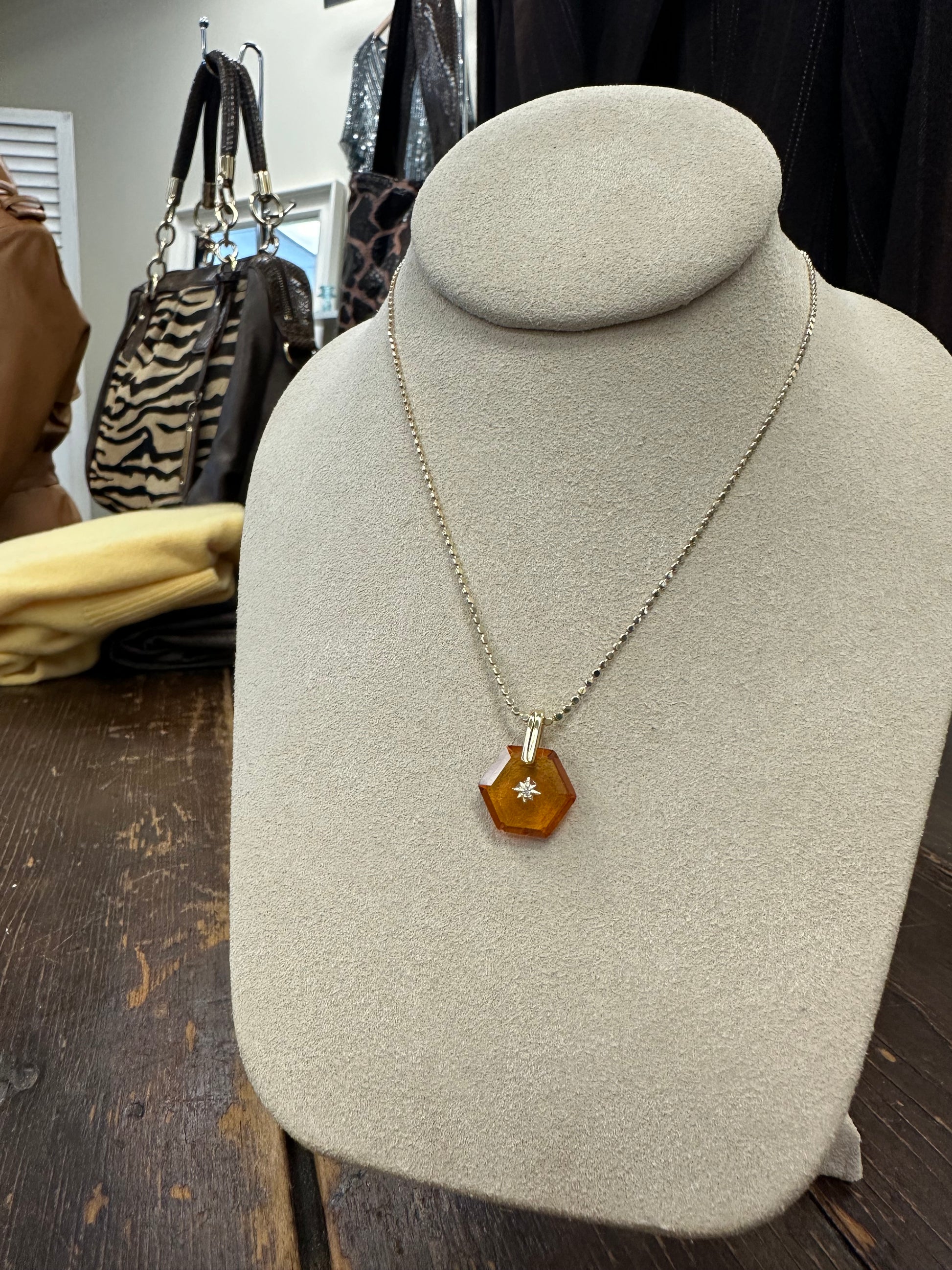 14K Gold Filled Transparent Hexagon Celestial Pendant