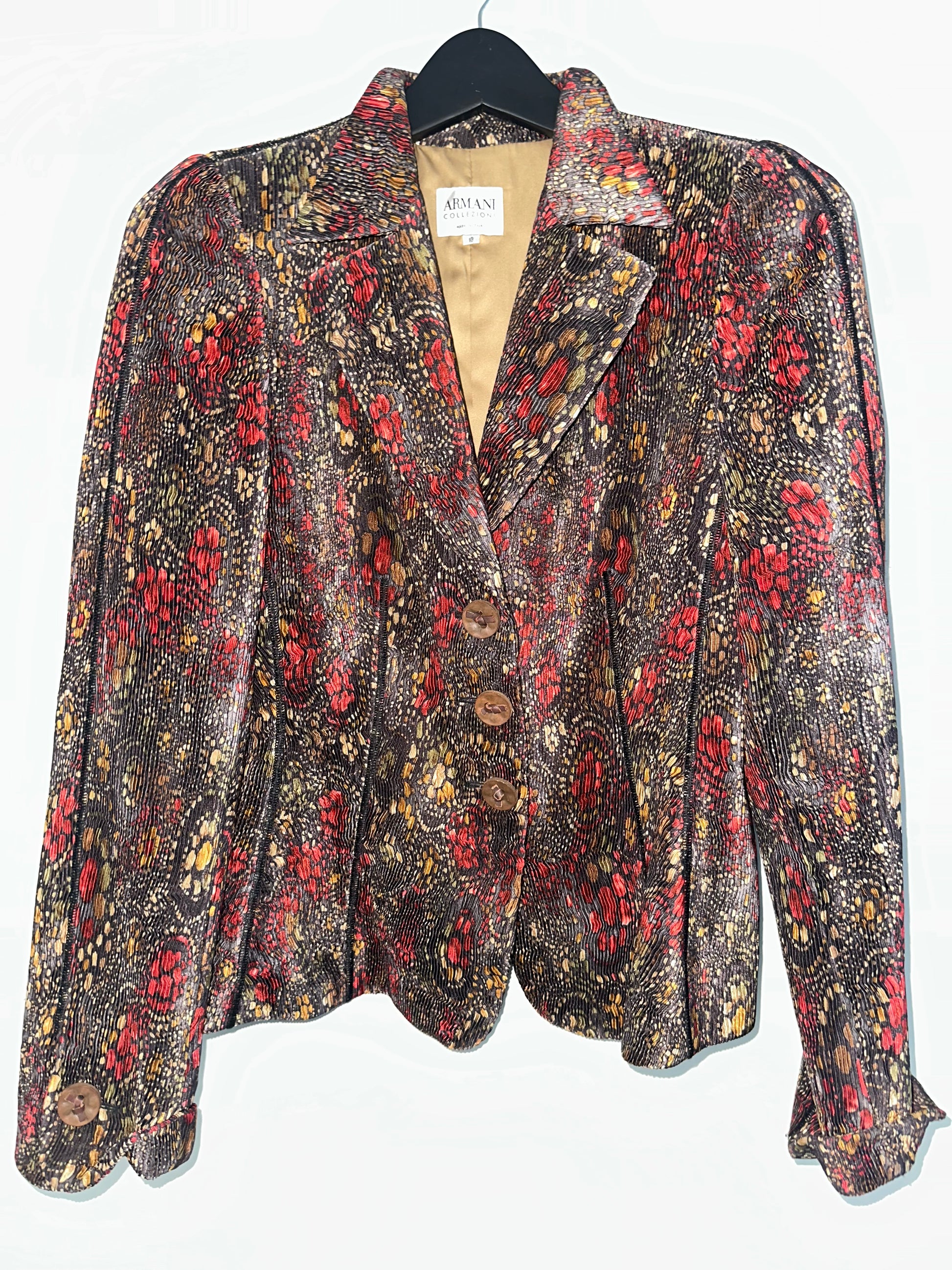Vintage (Early 2000s) Burgundy Armani Blazer with Unique Wood Buttons