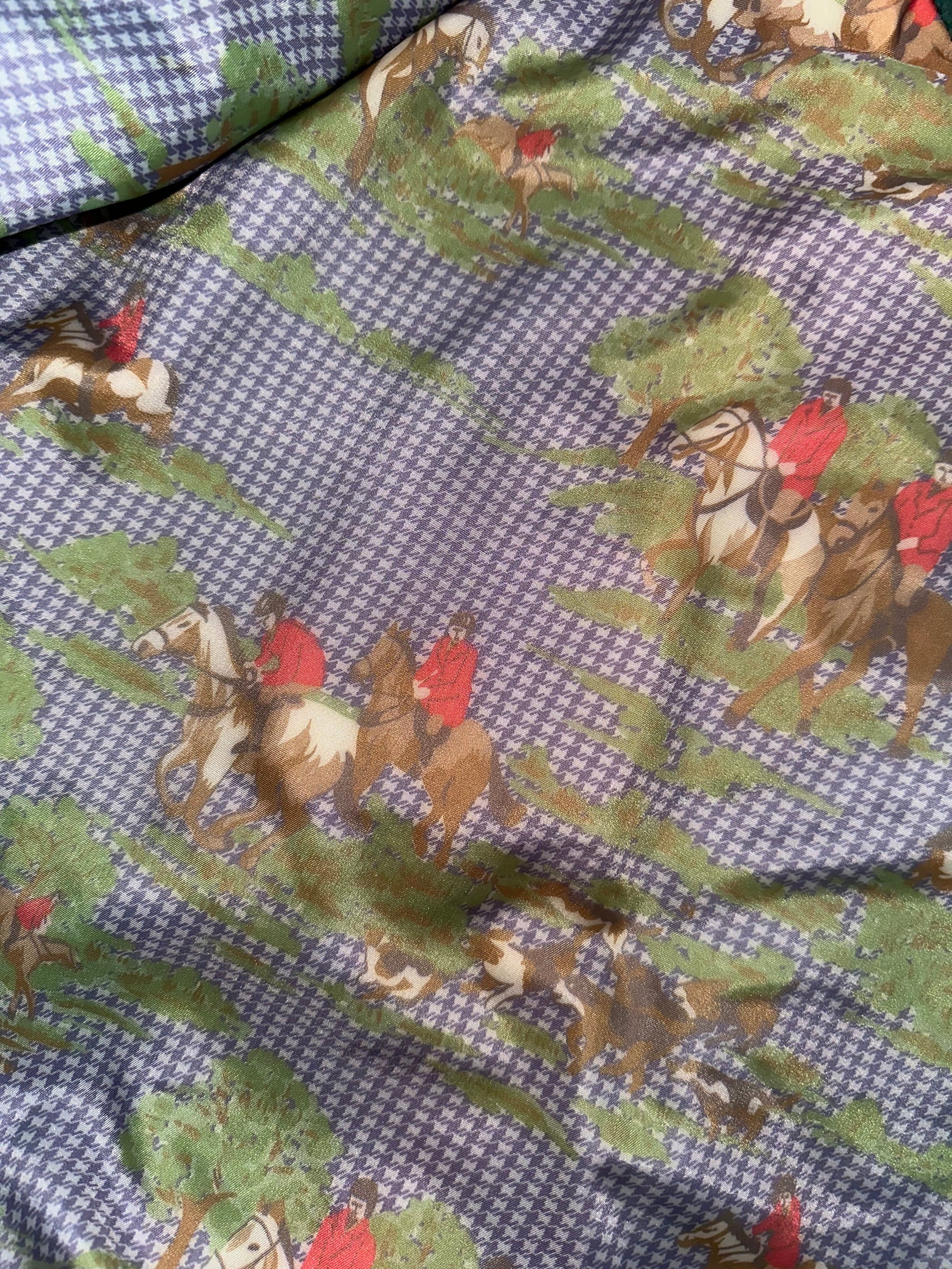 Vintage Green Leather Bomber Jacket with Horse Theme Interior Lining