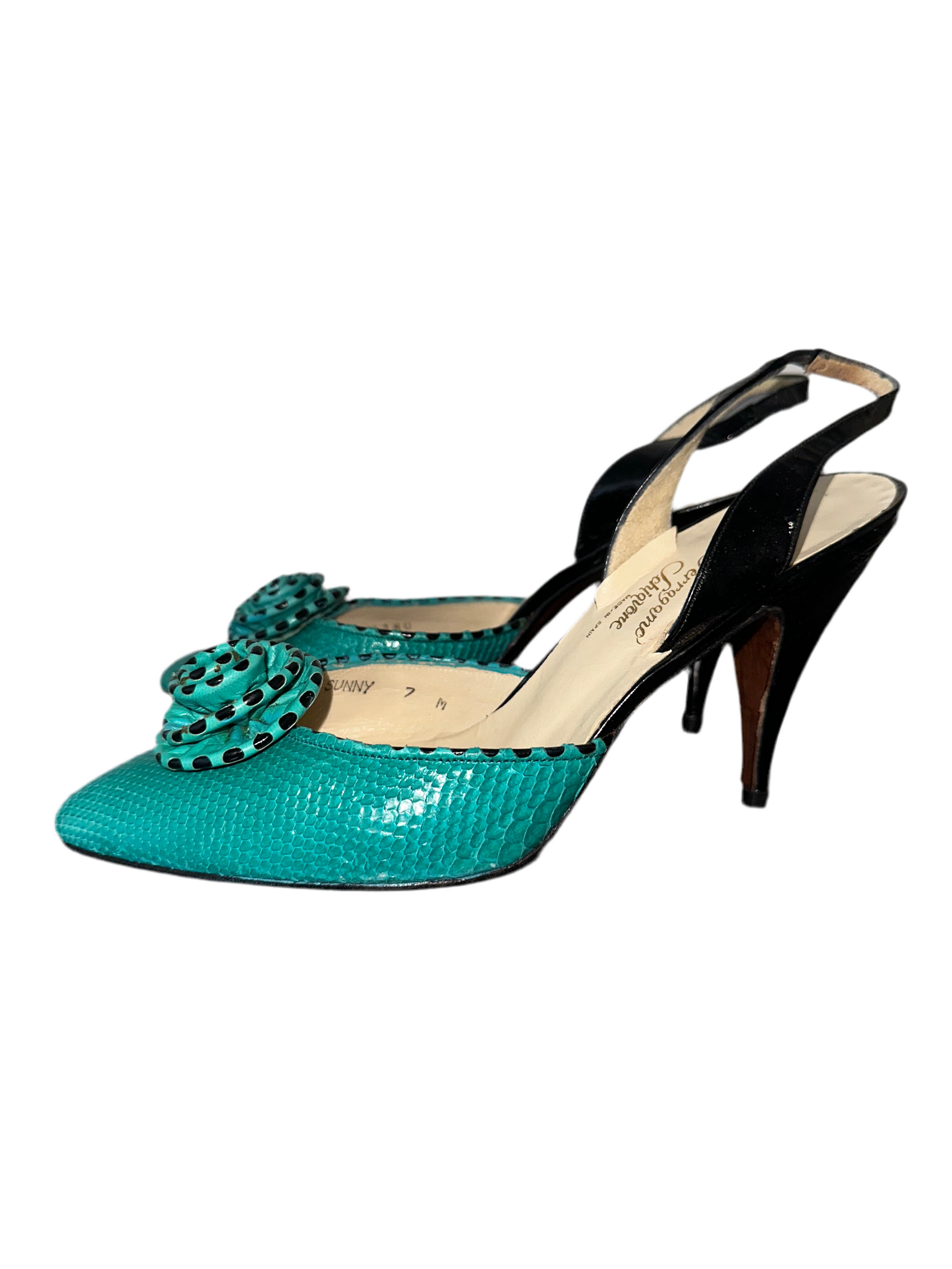 Vintage Turquoise Leather Heels
