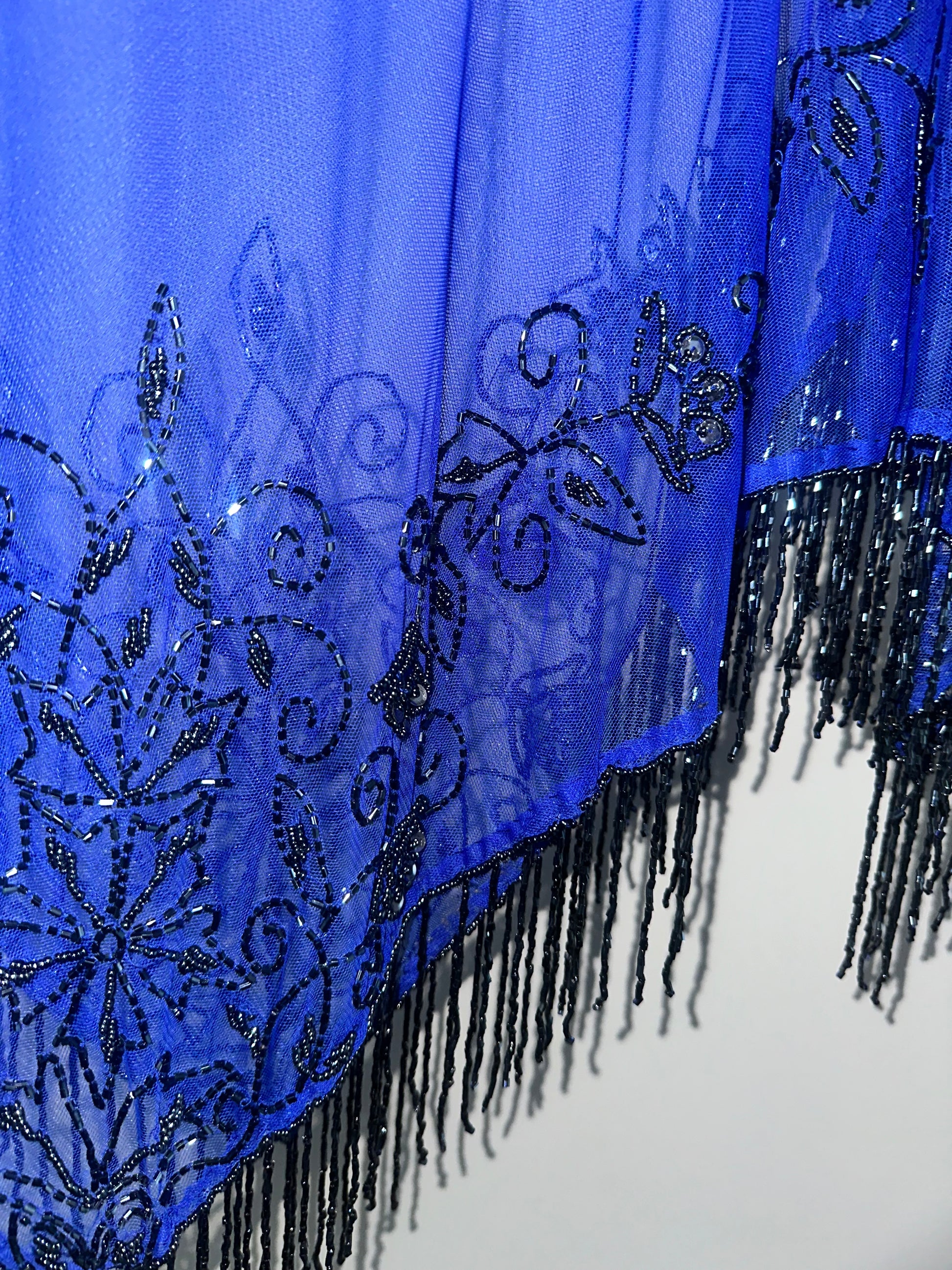 Vintage Sheer Royal Blue Poncho with Black Embellishment Trim
