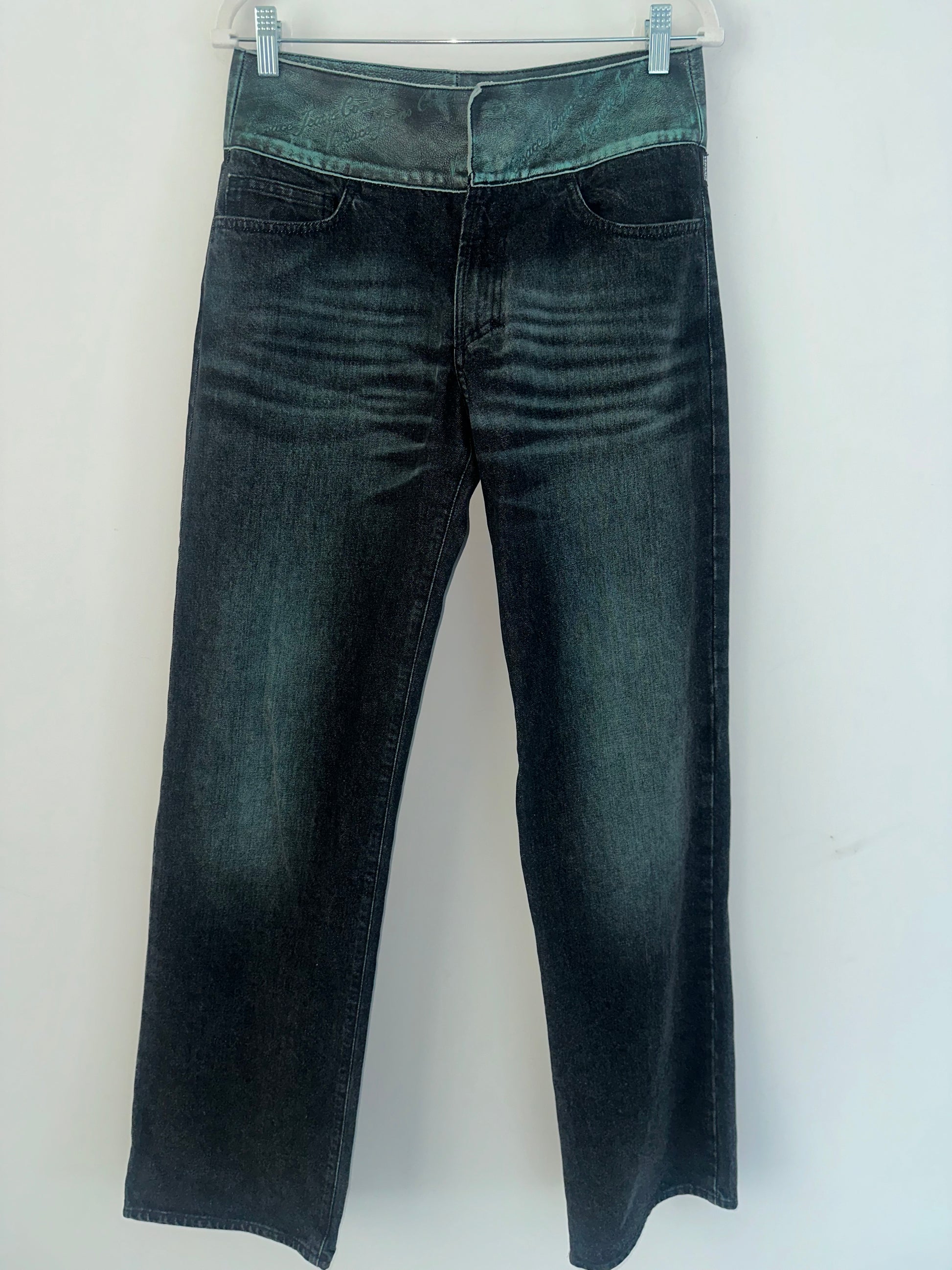 Vintage Versace Jeans Couture with Flare Bottoms and Leather Waistband
