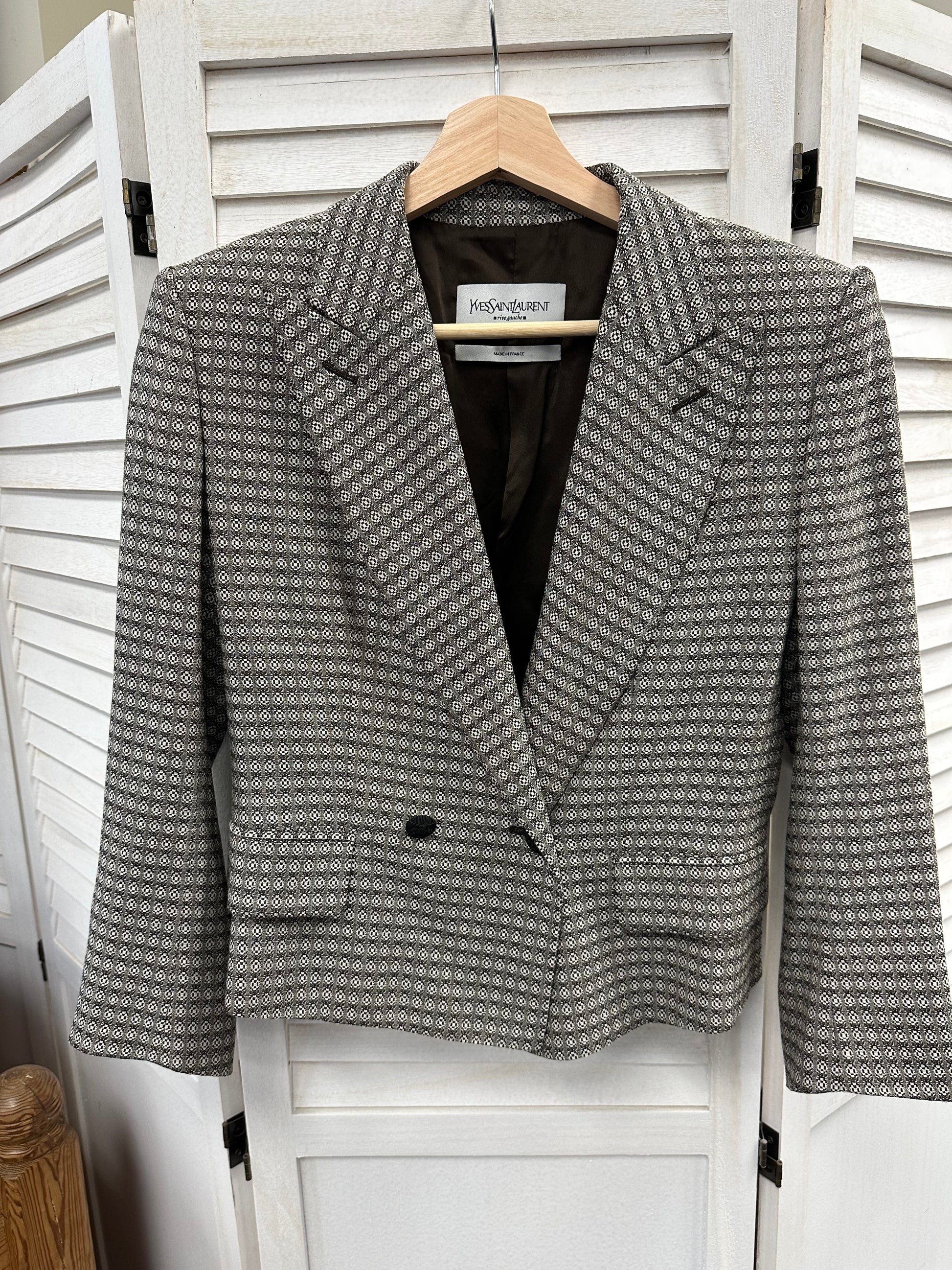 Vintage Yves Saint Laurent Wool Cropped Blazer with Silk Interior